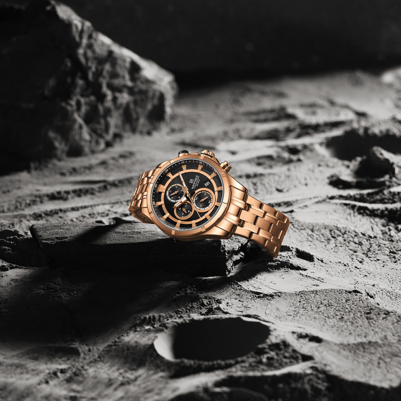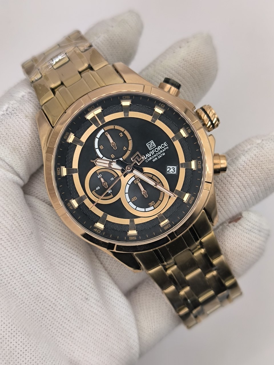 ساعت مچي کرنوگراف مردانه نيوي فورس NAVIFORCE مدل Nf8046 اورجينال رزگلد