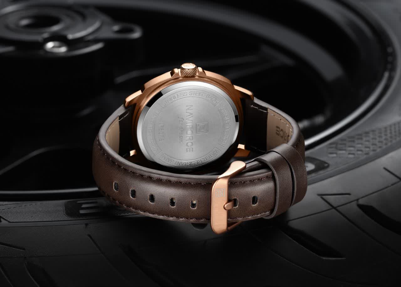 ساعت مچی عقربه ای مردانه نیوی فورس NAVIFORCE مدل NF8078 بند چرمی با ترکیب خاص رنگ بند چرم قهوه اي صفحه مشکي و قاب مشکی انتخابی متفاوت و جذاب برای استایل روزمره و رسمی است. این ساعت دارای بند چرمی دور دوخت و ضد تعریق قاب استیل رنگ ثابت و صفحه گرد با عقربههای شب نما میباشد که خوانایی بالایی در شب دارد. موتور ژاپن کوارتز دقیق به همراه تقویم عملکردی مطمئن و کاربردی را ارائه میدهد. شیشه معدنی مقاوم قفل سگکی استاندارد و خاصیت ضد آب بودن آن را به گزینهای مناسب برای استفاده روزانه تبدیل کرده است. این محصول به صورت کاملا ارجینال با جعبه و کارت گارانتی و همراه با گارانتی نیوی فورس ایران از فروشگاه اینترنتی روبی مد عرضه میشود.