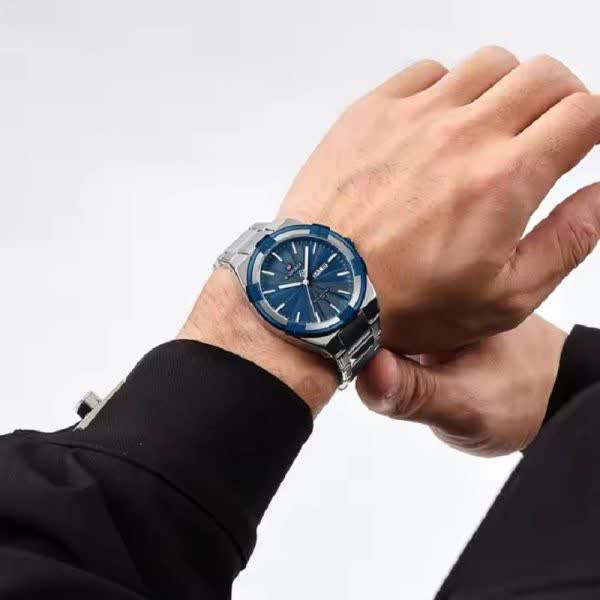 ساعت مچی عقربه ای مردانه نیوی فورس NAVIFORCE مدل Nf9218 اورجینال با موتور ژاپن انتخابی شیک و بادوام برای آقایان خوش سلیقه است. این مدل با بند استیل ضد زنگ توپُر و سنگین و صفحه سرمه ای طراحی شده و ظاهری کلاسیک و جذاب دارد. وجود تقویم قاب استیل عقربه های شب تاب شیشه معدنی ضد خش و مقاومت در برابر آب کارایی بالای ساعت را تضمین می کند. بند ضد حساسیت پوستی به همراه قفل کلیپسی ضامن دار استفاده راحت و ایمن را فراهم می سازد. این محصول اصل به همراه جعبه و کارت گارانتی معتبر نیوی فورس ایران از فروشگاه اینترنتی روبی مد عرضه می شود.