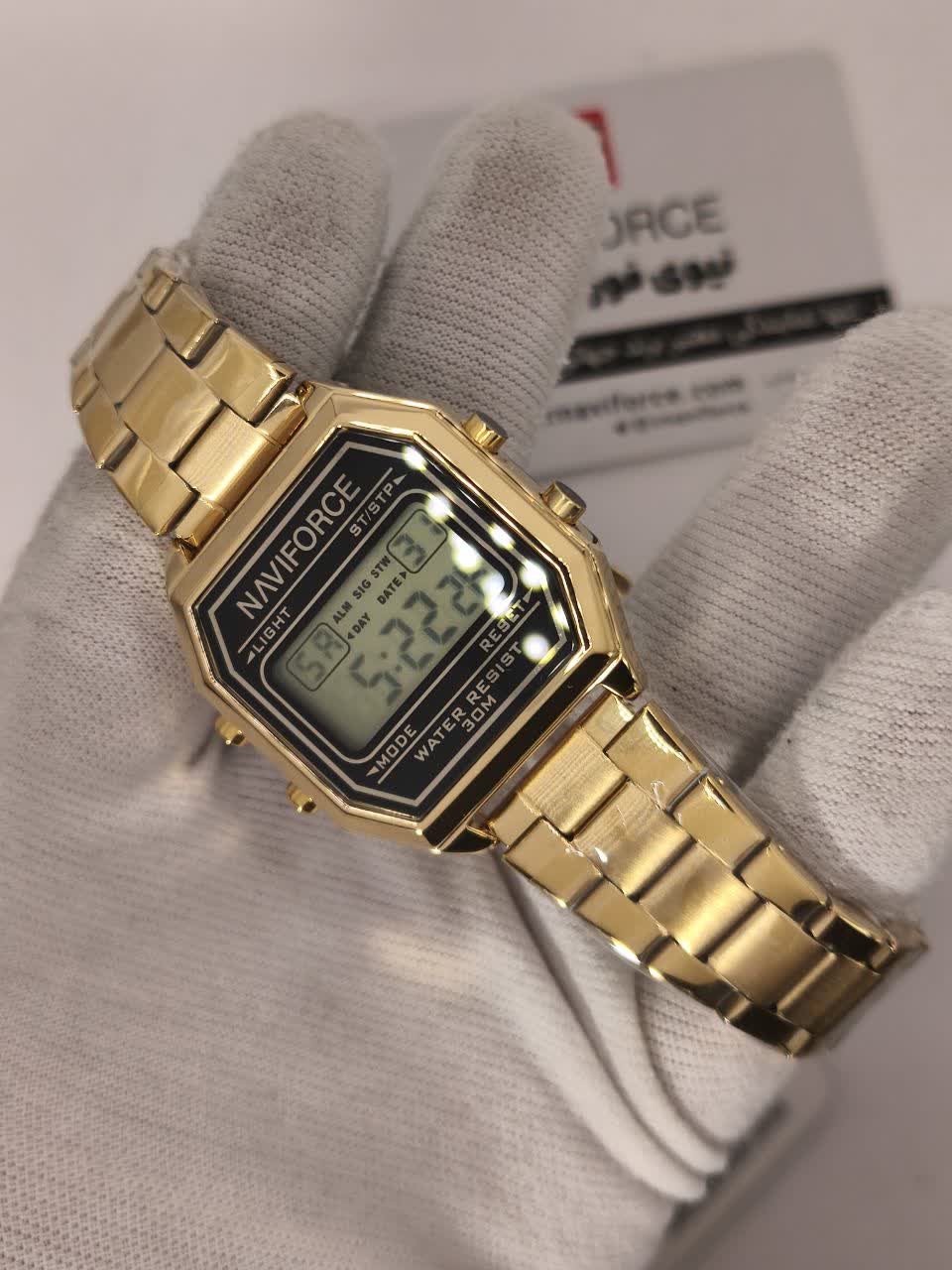 ساعت مچي مردانه ديجيتال نيوي فورس NAVIFORCE مدل Nf5063s طلايي استيل