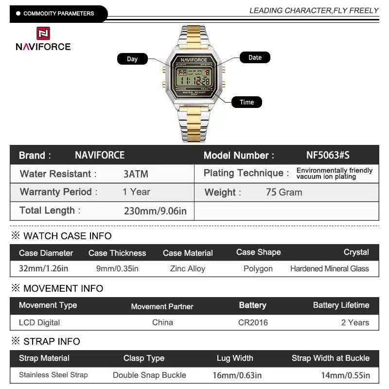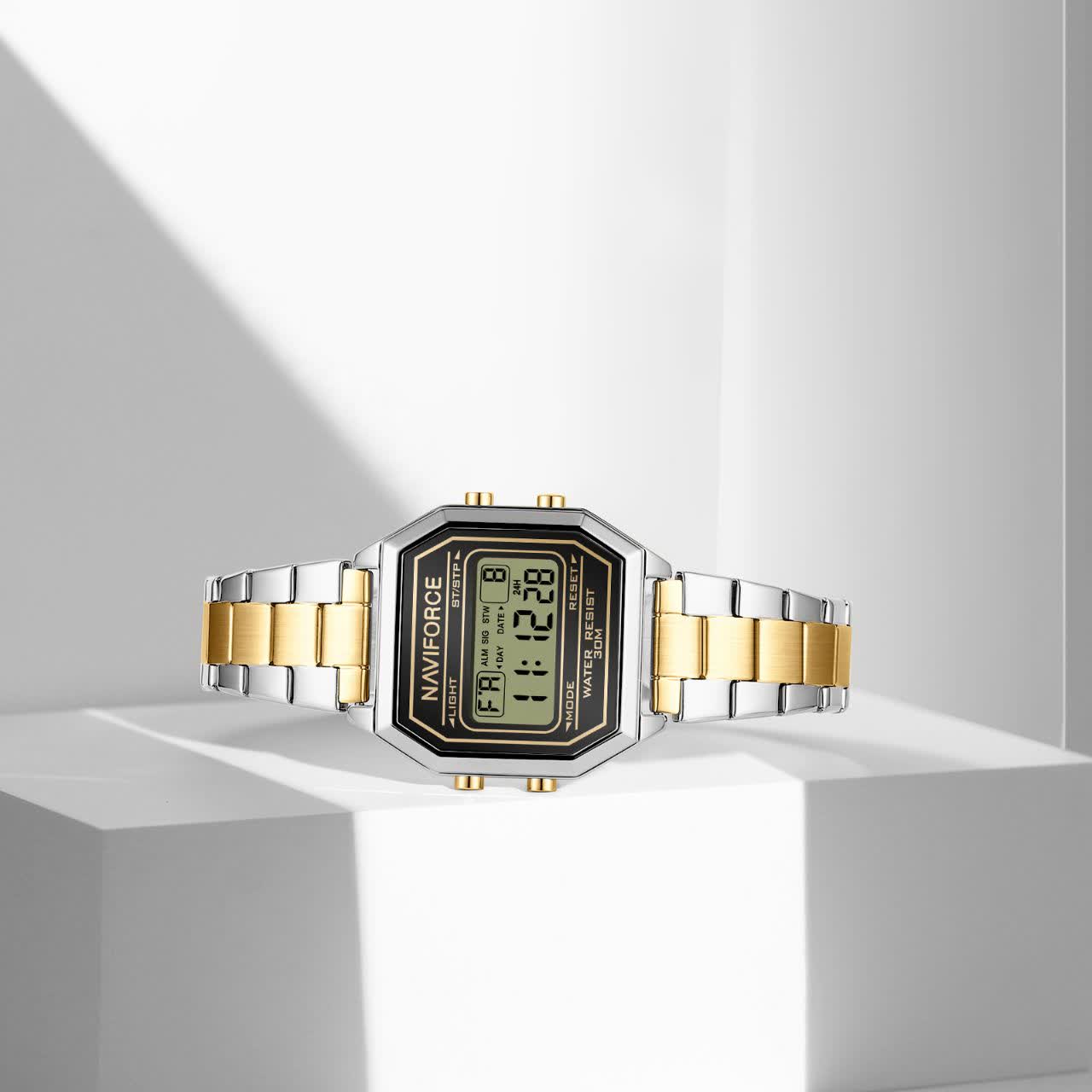 ساعت مچي مردانه ديجيتال نيوي فورس NAVIFORVE مدل Nf5063s طلايي استيل