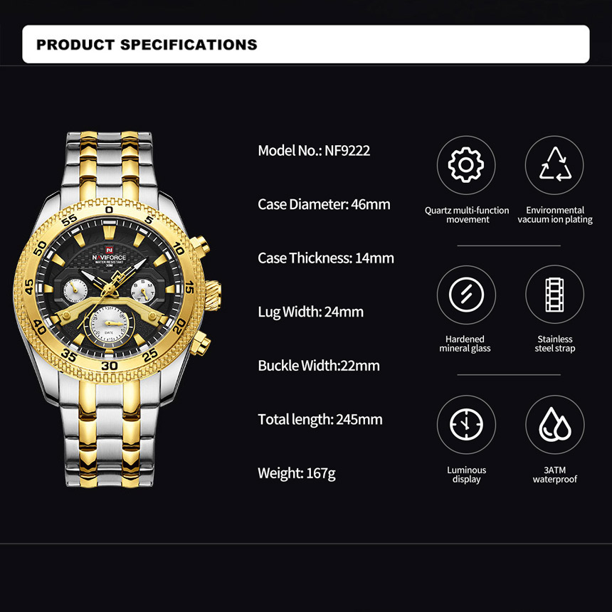ساعت مچی مردانه کرنوگراف نیوی فورس NAVIFORCE مدل Nf9222 موتور ژاپن