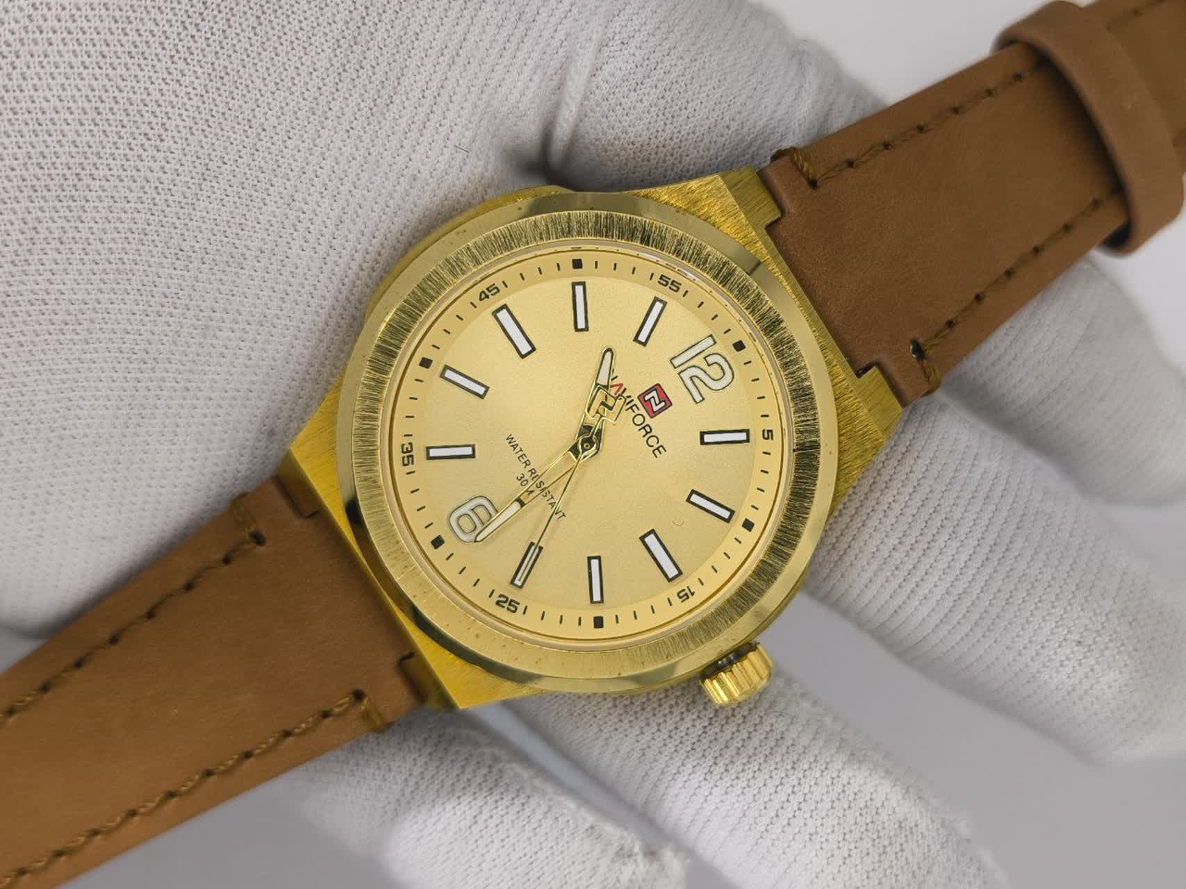 ساعت مچی عقربه ای مردانه نیوی فورس NAVIFORCE مدل Nf9233 بند چرمی