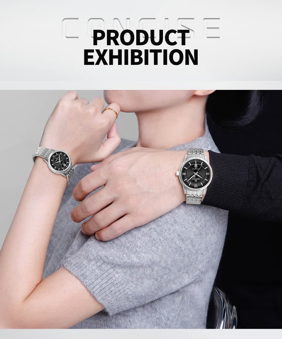 قفل کلیپسی ضامن دار - تقویم دار - قاب استیل - عقربه شب نما - بند طرح آجری جذاب - فرم صفحه دایره ای