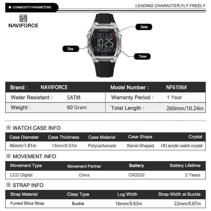 ساعت مچی مردانه دیجیتال نیوی فورس NAVIFORCE مدل Nf6106 بند رابر
