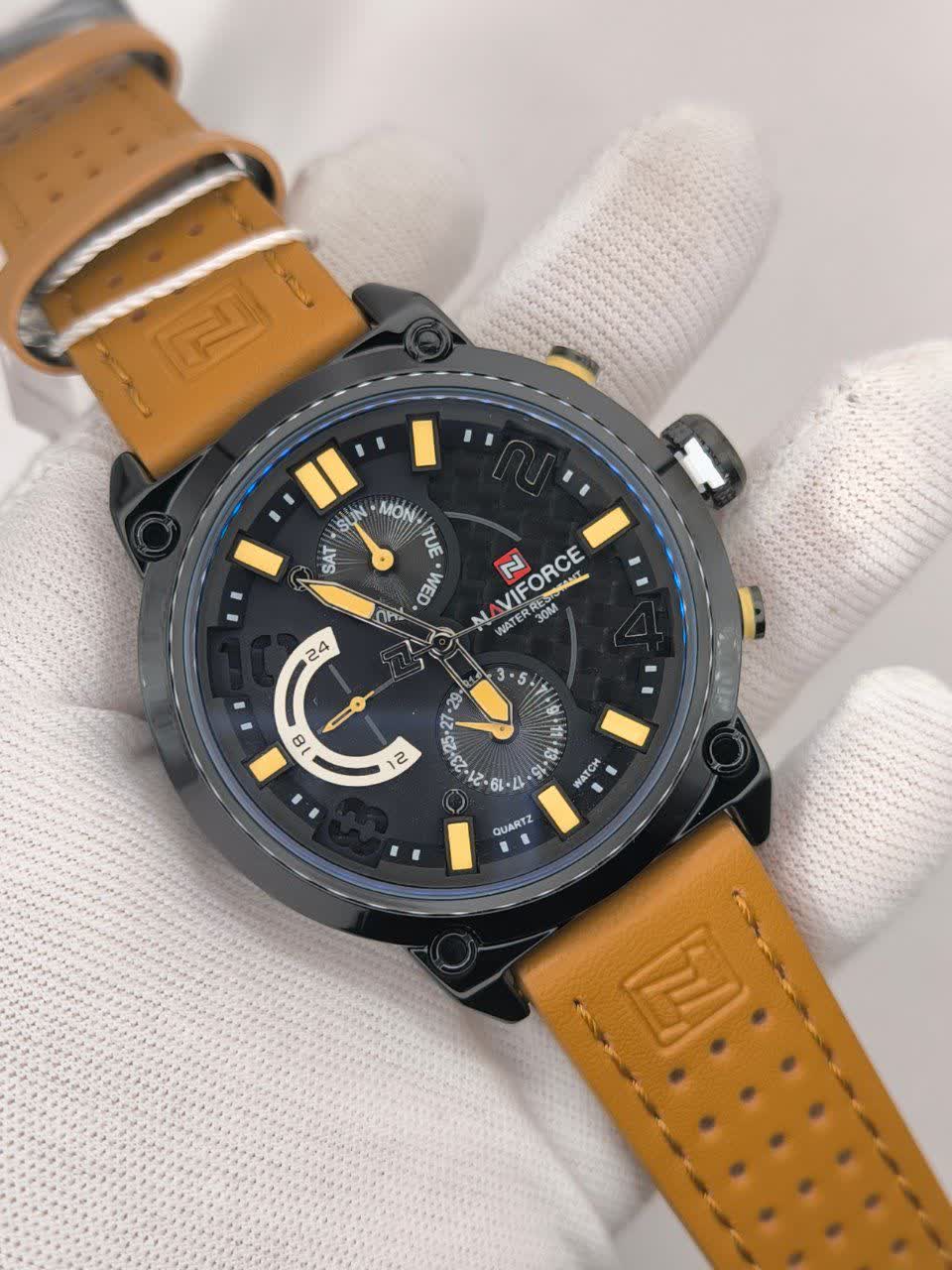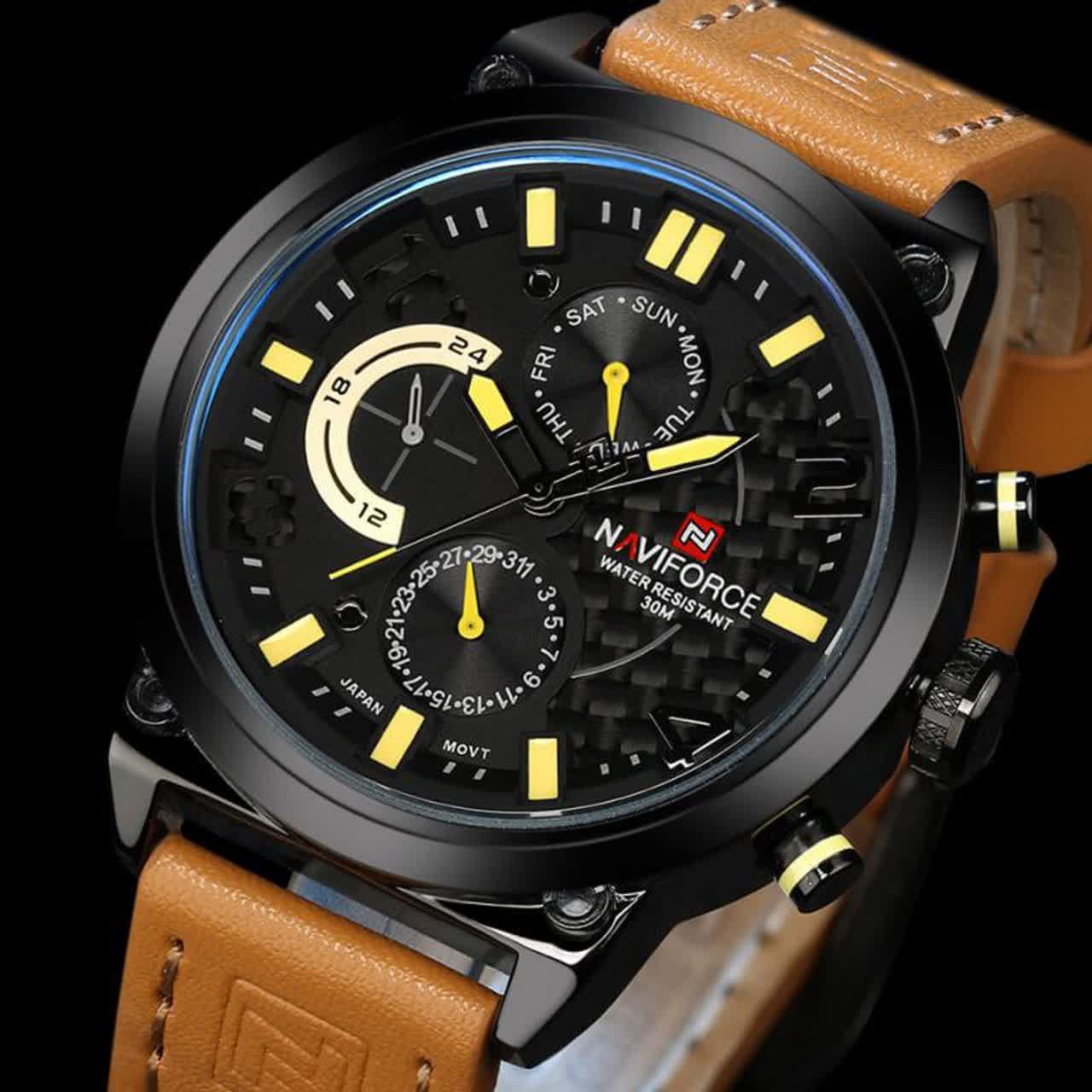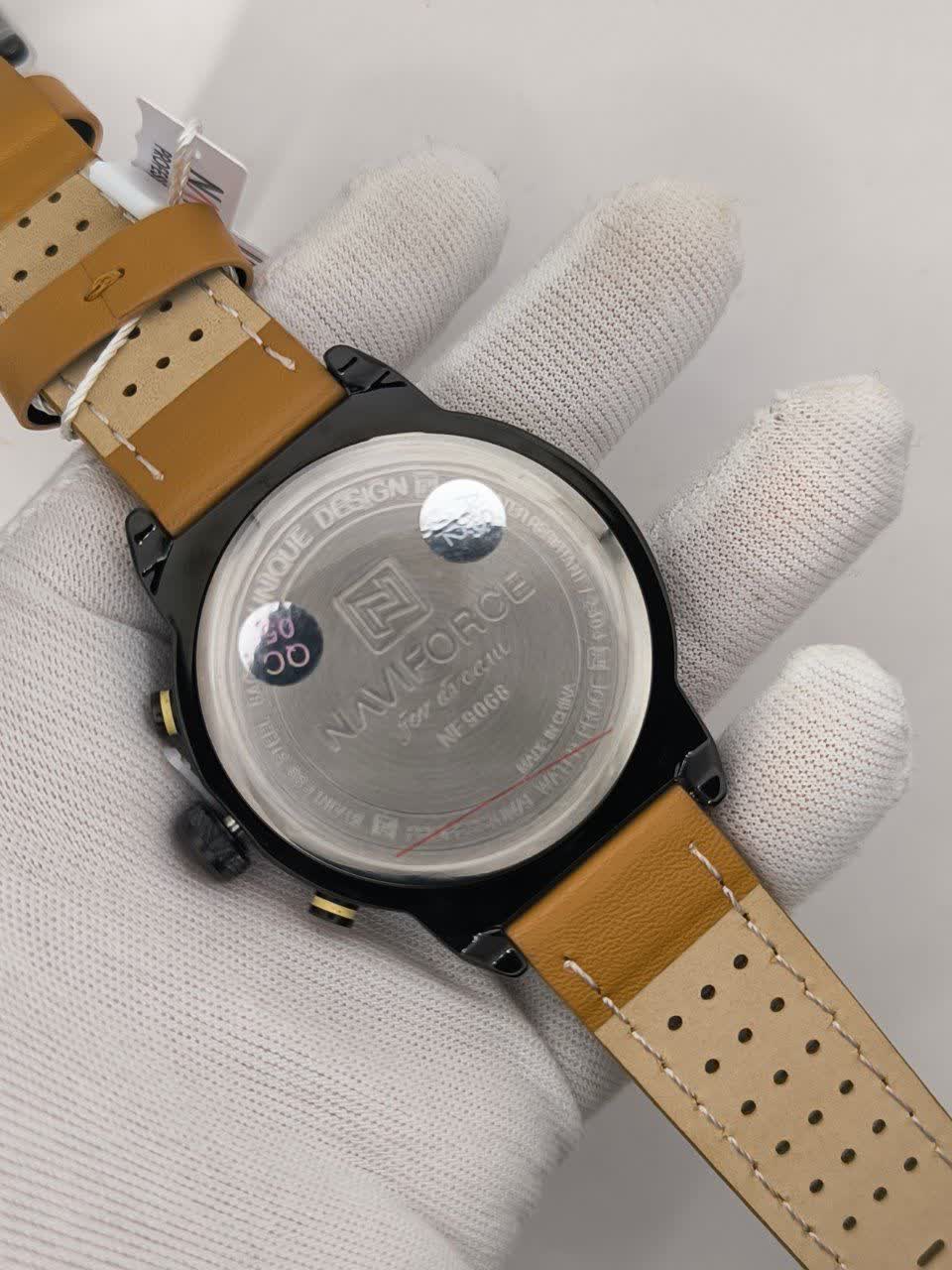 ساعت مچی مردانه نیوی فورس سه زمانه NAVIFORCE مدل Nf9068l بند چرمی
