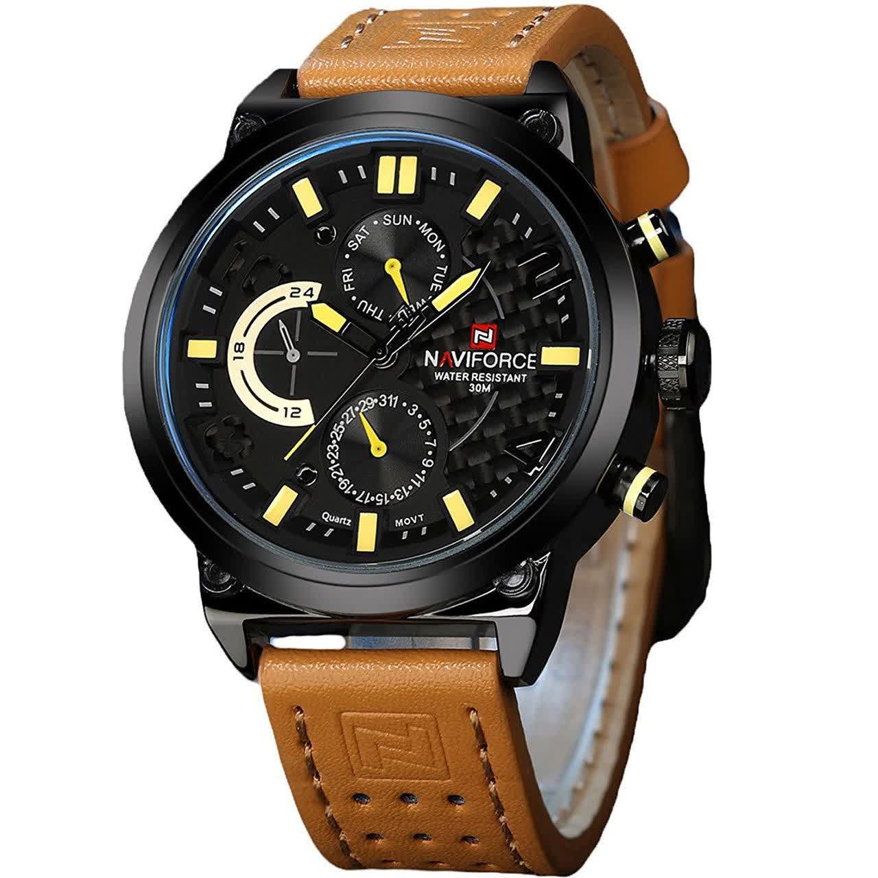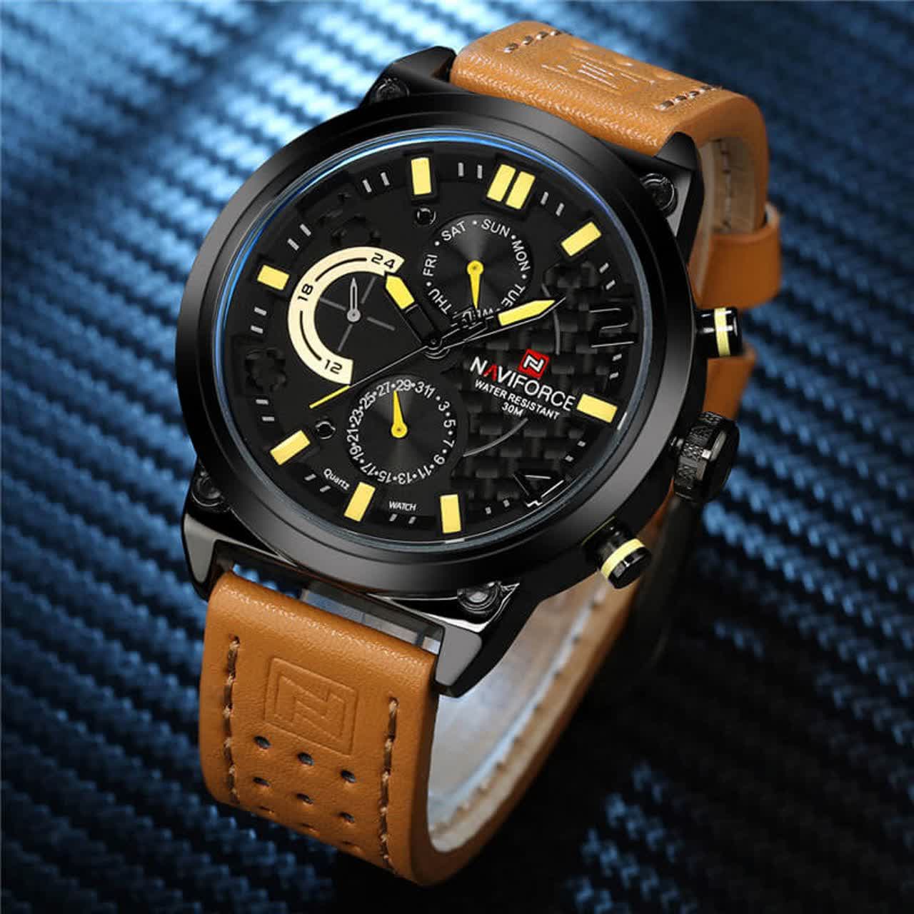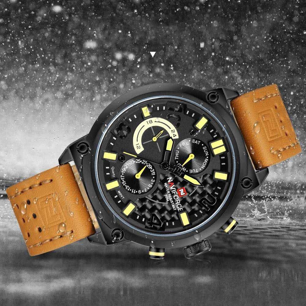 ساعت مچی مردانه نیوی فورس سه زمانه NAVIFORCE مدل Nf9068l بند چرمی