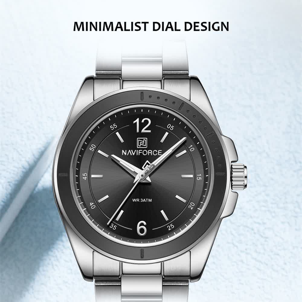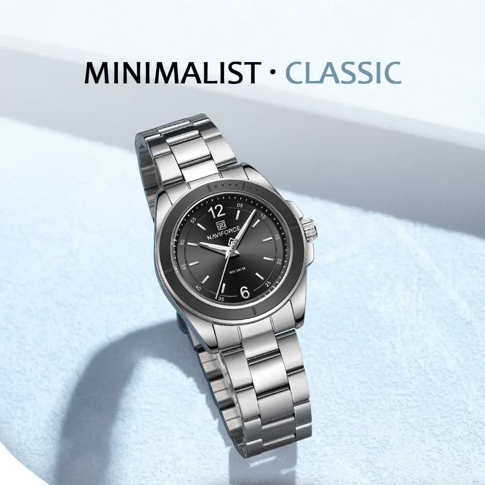 ساعت مچی عقربه ای زنانه نیوی فورس مدل Nf5062 با طراحی ظریف و کیفیت ساخت بالا انتخابی شیک و بادوام برای بانوان خوشسلیقه است این مدل اورجینال همراه با کارت گارانتی و جعبه عرضه میشود و با موتور ژاپنی دقیق قاب استیل ضد آب و شیشه معدنی ضد خش عملکردی مطمئن و مقاوم را ارائه میدهد بند استیل رنگ ثابت با طراحی ضد حساسیت پوستی و قفل کلیپسی ضامندار راحتی و امنیت را در کنار زیبایی فراهم میکند عقربههای شبنما نیز استفاده از ساعت را در نور کم آسانتر میسازند برای خرید این محصول به سایت نیوی فورس ایران irnaviforce.com مراجعه کنید و استایل خود را خاصتر کنید.