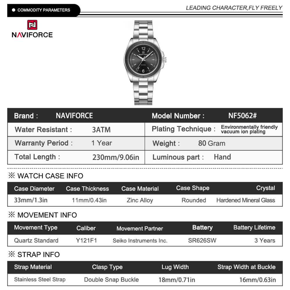 ساعت مچی عقربه ای زنانه نیوی فورس NAVIFORCE مدل Nf5062 اورجینال